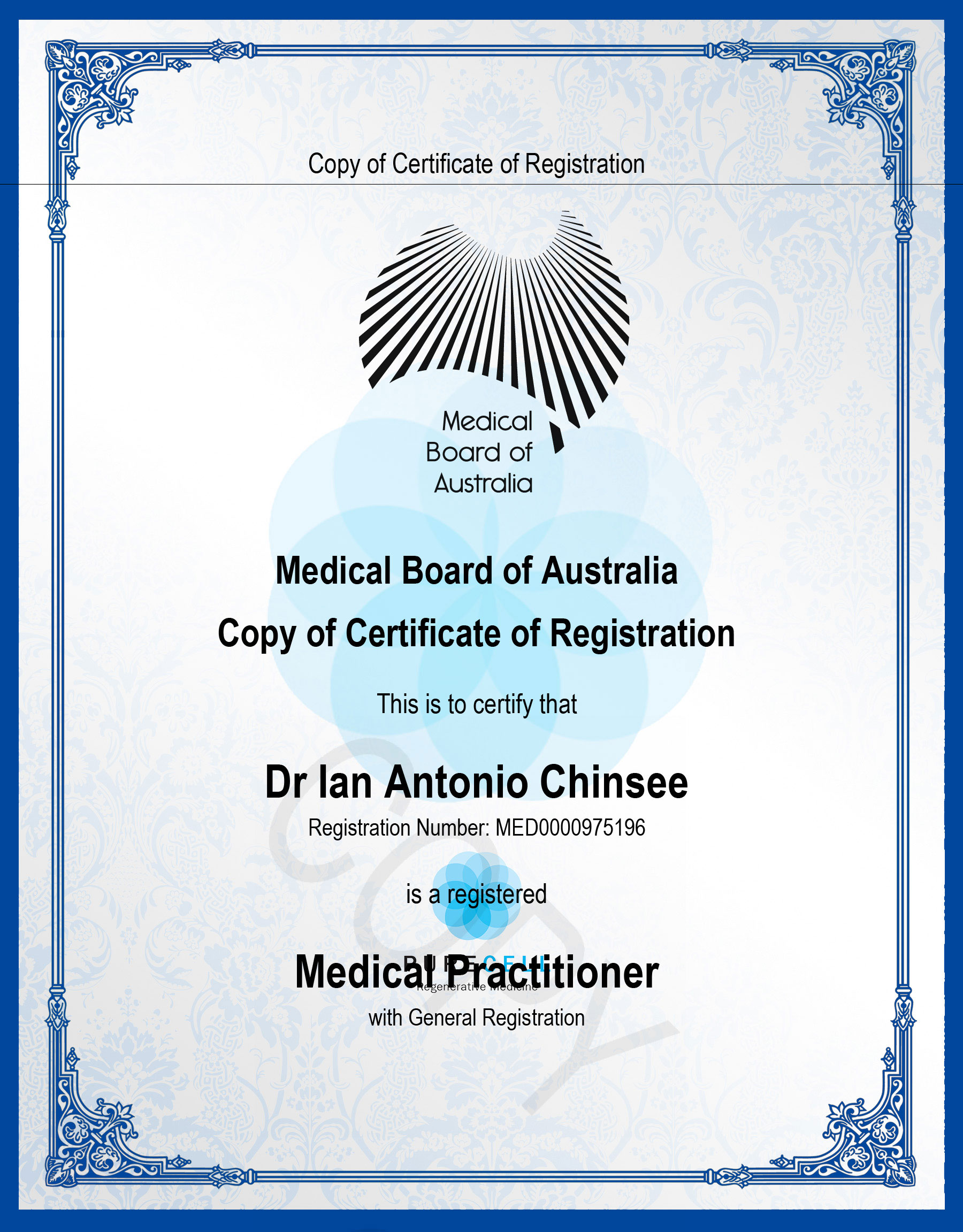 Dr Ian行醫資質證書
