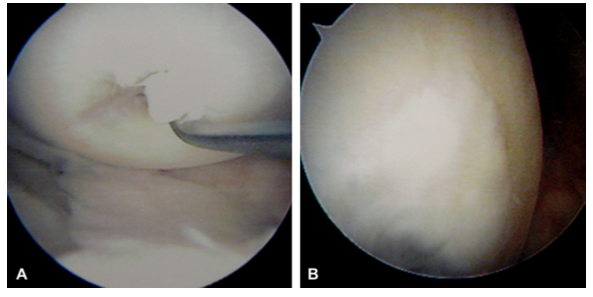 A圖這是一個軟骨損傷的案例,20*30mm的損傷面積,B使用UCF7個月後修復的效果。