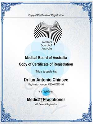 Dr Ian行醫資質證書