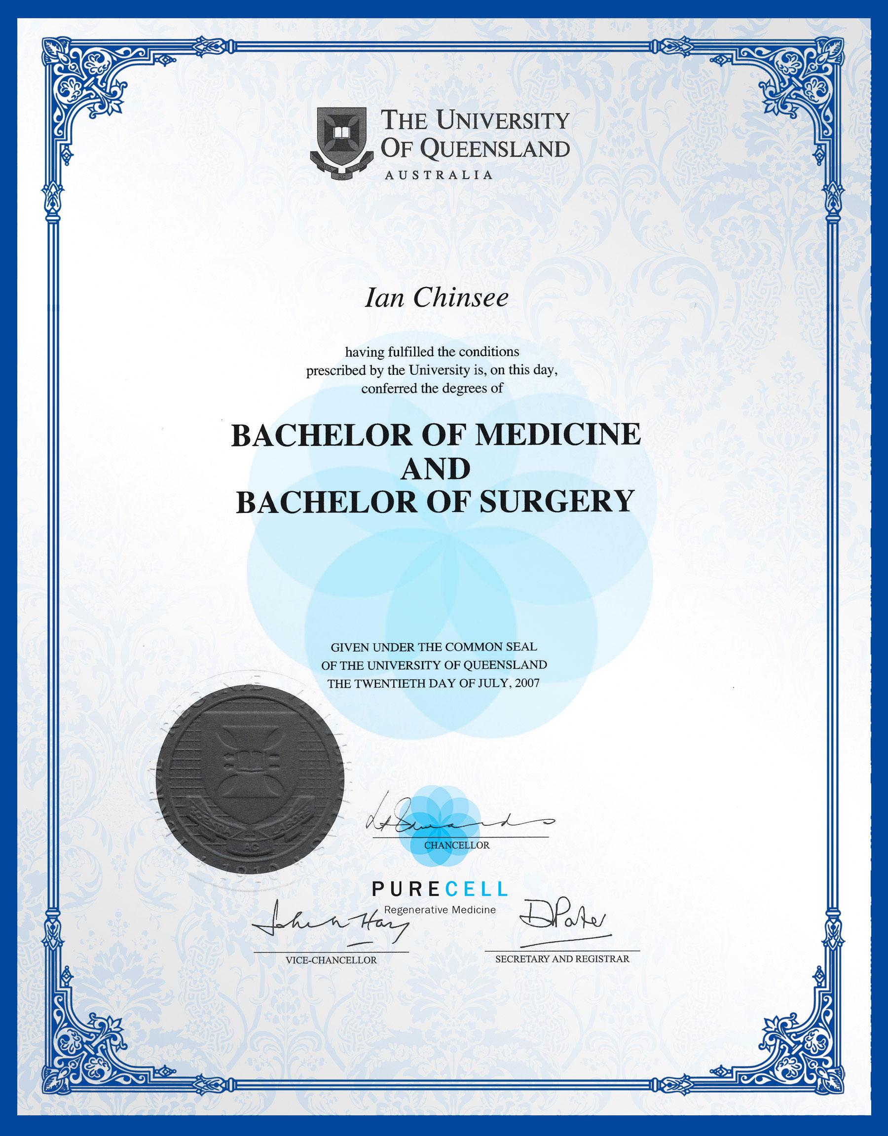 Dr Ian學位證書