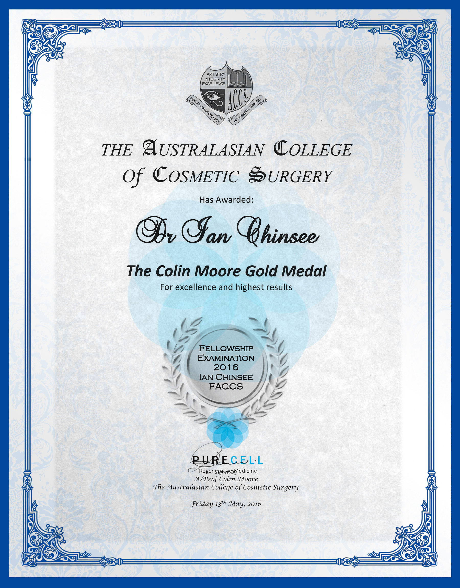 Dr Ian澳洲醫學會金牌勳章證書